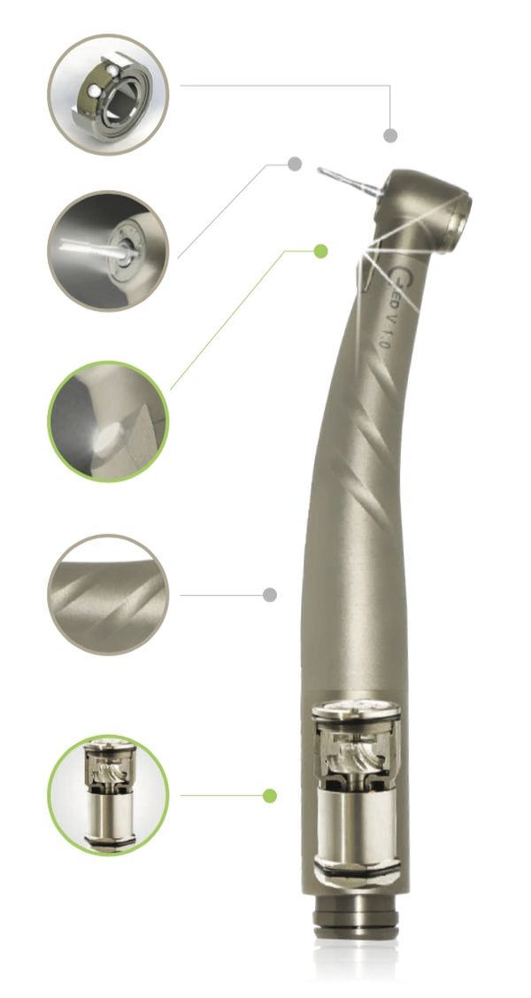 The Prestige Dental Station is our most popular mobile dental station. It is known for its reliability, internal storage, and pneumatic height adjustment. The included handpieces offer versatility and efficiency. This dental station now includes the NEW Swivel LED High-speed Handpiece that provides a brighter light source, compared to that of fiber-optic tubing.